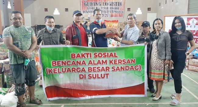 SULUTDAILY|| Ratahan – Bentuk kepedulian kepada warga korban bencana banjir bandang di Kabupaten Minahasa Tenggara (Mitra), Keluarga Besar Sandag (KBS) Sulawesi Utara menyerah bantuan paket sembako.