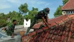 Nampak begitu berbeda setelah Seluruh atap genteng sudah terkena kuasan lapisan cat baru dari tangan anggota Satgas TMMD.