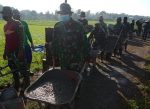SULUTDAILY//Pati – Pemandangan tudak seperti biasanya terlihat dalam pelaksanaan pengecoran jalan sasaran fisik TNI Manunggal Membangun Desa (TMMD) Reguler ke-111 Kodim 0718/Pati di Desa Tamansari, Kecamatan Jaken, Kabupaten Pati, Jawa tengah. Bagi yang tidak terbiasa, pasti ada sesuatu yang aneh, namun bagi TNI hal tersebut merupakan hal yang sangat biasa dan sebuah kebiasaan.