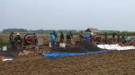 Personel Satgas TMMD dibantu warga tampak semangat untuk melaksanakan pengecoran, mereka silih berganti membawa angkong menuju titik digelarnya pengecoran. Operator mesin molen pun dengan sigap menakar matrial yang diaduk di molen.