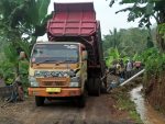 Kudus – Salah satu sarana pendukung yang sangat penting adalah, kecepatan dan lancarnya material sampai di titik lokasi TNI Manunggal Membangun Desa (TMMD) Reguler-107, di Dukuh Talun, Desa Kedungsari, Kecamatan Gebog, Kabupaten Kudus, untuk mempercepat proses pengecoran jalan agar mudah dan selesai tepat waktu.