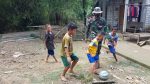 SULUTDAILY//Pati – Seiring waktu berjalannya TMMD reguler ke 111 Kodim Pati, warga desa Tamansari, Kecamatan Jaken sudah sangat akrab kesehariannya dengan anggota satgas TMMD. Begitu juga dengan anak-anak didesa tersebut ketika mereka bermain bola kadang mereka mengajak anggota satgas turut ikut.