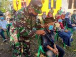 Pada kegiatan tersebut ada sebagian penerima santunan yang tidak memakai masker, Dsnramil 09 Kapten Inf Purwadi membantu salah satu anak untuk memakaikan masker yang diberikan kodim dengan sabar dan kebapakan biar anak merasa terlindungi.