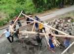 SULUTDAILY||Bitung – Satgas TNI Manunggal Membangun Desa ke-105 Kodim 1310/Bitung dan masyarakat melaksanakan gotong royong bersama mengangkat rangka atap pembangunan kantor tiga pilar di Kelurahan Duasudara Kecamatan Ranowulu Kota Bitung, (25/7/2019).