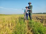 Kepedulian Serda Sukarji pada saat melihat Sukarmi (47) saat melintas diarea persawahan dekat dengan lokasi betonisasi jalan di desa Tamansari yang penuh dengan tumpukan material bahan baku betonisasi jalan penghubung desa Tamansari dengan desa Sumberarum.