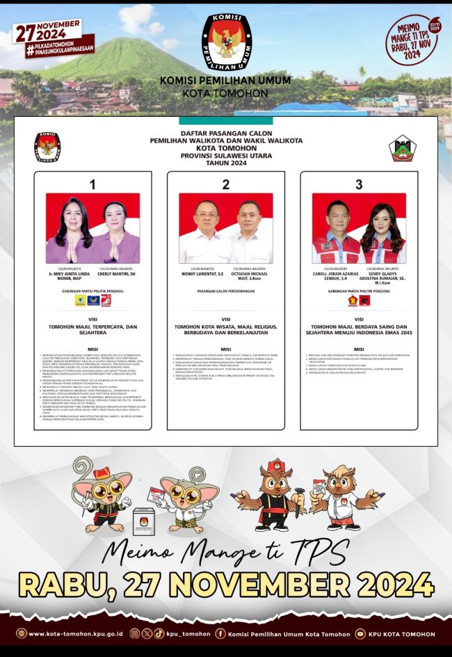 SULUTDAILY|| Tomohon – Pasangan Calon Walikota/Wakil Walikota Tomohon dalam barisan Koalisi Kerakyatan untuk Pilkada Serentak Tahun 2020 Caroll JA Senduk SH dan Wenny Lumentut SE (CSWL) memastikan pihaknya tetap konsisten dengan kampanye sehat dan damai.