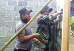 SULUTDAILY|| Bitung – Tanpa rasa lelah sedikitpun TNI-Polri, dan masyarakat saling bergotong-royong untuk membangun Kantor Tiga Pilar tersebut.