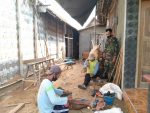 Terlihat Sertu Toha sedang asyik berbincang dengan Jasmen, tukang kayu yang dipercayakan untuk pembuatan kusen pintu dan jendela pada program bedah Rumah Tidak Layak Huni(RTLH) Pra TMMD Kodim Pati.