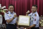 Sebelum melanjutkan perjalanan menuju Lanud Anang Busra Tarakan, Pangkoops II memberikan bingkisan alat-alat kesehatan berupa baju APD lengkap, Termal Gun, dan Hand Sanitizer kepada Komandan Lanud Sam Ratulangi sebagai tanda kesiapsiagaan dalam mencegah virus corona.(**)