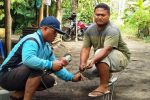 Terlihat Kopda Widodo melakukan penyusunan besi dan menganyamnya sebagai tiang cor yang berguna untuk memperkuat bangunan rumah tiga pilar yang ada di Kelurahan Duasudara Kecamatan Ranowulu Kota Bitung, (6/7/2019).