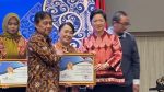 Penghargaan dari Kementerian Kependudukan dan Pembangunan Keluarga/BKKBN Republik Indonesia ini diterima oleh Ketua TP-PKK Kota Tomohon drg Jeand’arc Senduk – Karundeng bersama Ketua Pokja Kampung KB ‘Kawangunan’ Kelurahan Pangolombian Olvin Lontoh. (davyt)