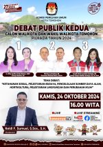 KPU Tomohon Debat Publik Kedua, Pasangan Calon Walikota dan Wakil Walikota Tomohon Pilkada Tahun 2024Stevy Tampi23 October 202423 October 2024Politik17 Views Post Views: 17 Don't MissResmi Dilantik, Yusra Alhabsyi Nahkodai DPW PKB Sulut Masa Bakti 2026-2031DPW Perempuan Bangsa PKB Sulut Siapkan Kader Pemimpin Masa Depan Lewat DIKBAR 2025THL–Bahlil Kian Mesra, Pertanda Pergeseran di Golkar Sulut?Bawaslu Sulut Antisipasi Dampak Putusan MK Nomor 135 dan 104dr. Wenny Gaib Sebut Kaderisasi Kunci untuk Memperkuat PartaiKomisi 1 DPRD Tomohon Sambangi Kelurahan, Tinjau Proses Pelayanan Pemerintah dan Serap Aspirasi