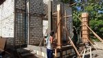 Untuk membangun tiang teras diperlukan keahlian khusus seperti Serda Amir yang memiliki kemampuan dalam hal rancang bangun dan ukur mengukur rumah, Senin (05/07/2021).