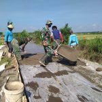 “Untuk mempercepat, kami sengaja menunggu adukannya disini agar setelah adukan siap langsung kita kita geser ke lokasi, agar tidak bertabrakan saat pendistribusian maka kami berbaris kebelakang biar tertib dan rapi,”Ujar Serda Triyatmojo, saat ditemui dilokasi.