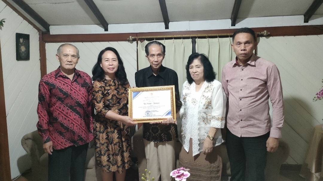 SULUTDAILY|| Tomohon – Kepala Dinas Pengendalian Penduduk dan Keluarga Berencana (PPKB) Kota Tomohon Mareyke Manengkey SPd menyerahkan Piagam Penghargaan Keluarga Harmonis Membina Keluarga Bahagia dan Sejahtera Selama 50 Tahun Pernikahan dari Gubernur Sulawesi Utara Yulius Selvanus SE kepada Keluarga Tampi – Rumayar, (17/4/2026) di Kelurahan Talete Satu Kecamatan Tomohon Tengah.