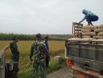 SULUTDAILY//Pati – Terlihat antusias penuh semangat sikap siap sedia antara anggota satgas TMMD dan warga Desa Tamansari, Kecamatan Jaken, Kabupaten Pati, yang akan menurunkan dan mengangkat material semen, Sabtu (19/06/2021).
