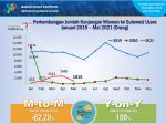 SULUTDAILY|| Manado- Perkembangan pariwisata di Sulut terbilang lesu. Jumlah Wisatawan Mancanegara (Wisman) yang datang ke Sulawesi Utara melalui pintu masuk bandara Sam Ratulangi bulan Mei 2021 hanya sebanyak 1.015 orang menurun 62,20 persen dibanding bulan April 2021 (M-to-M). Namun, dibandingkan bulan Mei 2020, meningkat 100 persen (Y-on-Y) tidak ada kunjungan Wisman Ke Sulawesi Utara.
