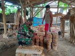 Kopda Bowo salah satu anggota satgas TMMD reg.111 Kodim Pati pada saat disela istirahat siang mengunjungi salah satu kerajinan ukir kayu milik Sumijan (42) desa Tamansari kecamatan Jaken kabupaten Pati.Rabu,(16/06/2021).