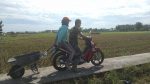 SULUTDAILY//Pati – Anggota TMMD Reguler Ke – 111 Kodim 0718/Pati terlihat warga menarik angkong yang rusak mengunakan sepeda motor untuk di perbaiki angkong yang rusak sebelum bekerja, Angkong biasa digunakan untu mengangkat material keras seperti Batu, pasir dan juga semen,mengggunakan angkong atau gerobak dorong untuk pengecoran,Minggu (27/06/21).