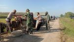 SULUTDAILY//Pati – Guna pekerjaan proyek pembangunan pengecoran jalan persawahan di Desa Tamansari, Kecamatan Jaken, Kabupaten Pati, Jawa Tengah, melalui TMMD Reguler 111 Kodim 0718/Pati, alat pengaduk semen atau molen, terus dioperasionalkan.