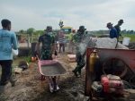 SULUTDAILY//PATI, Kekompakan dan kebersamaan yang dilakukan oleh anggota satgas TNI Manunggal Membangun Desa (TMMD) Reguler ke -111 di Desa Tamansari, pengerjaan pembangunan fisik berupa betonisasi jalan terus digenjot dengan berjalan nya waktu hari kedelapan program TMMD, Selasa (22/06/2021).
