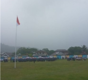 Di Tengah curah hujan pelaksanaan Upacara peringatan HUT dilaksanakan di lapangan Gesit Tahuna, Rabu (31/01/2024)