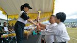 SULUTDAILY|| Tomohon – Ketua Komite Olahraga Nasional Indonesia (KONI) Kota Tomohon yang juga Anggota DPRD Kota Tomohon Ir Miky JL Wenur MAP menyerahkan api obor PORKOT ke-4 Kota Tomohon Tahun 2019 pada atlit berprestasi, (22/10/2019) di Stadion Babe Palar Tomohon.
