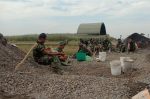 Saat pendinginan mesin molen itulah, tidak disia-siakan oleh para personel yang tergabung Satgas TMMD beristirahat sambil minum untuk mendinginkan sejenak suhu badan yang dari pagi terkena sengatan matahari.
