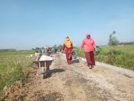 Tampak terlihat dua orang ibu-ibu berjalan pulang, selesai mengantarkan sarapan pagi untuk anggota satgas TMMD dan warga yang akan melaksanakan pengerjaan pengecoran jalan, Kamis (01/07/2021).