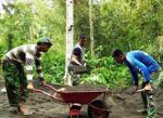 Personel satgas TMMD tidak mengeluh beban yang mereka angkat berat, yang diangan mereka hanya ingin mewujudkan impian warga Duasudara yang ingin memiliki jalan yang nyaman untuk dilewati.