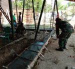 SULUTDAILY//Pati- Satgas pra TMMD bersama-sama dengan warga melepas begisting papan ring yang sudah kering, kemudian nantinya bisa dilanjutkan dengan pemasangan batu bata.