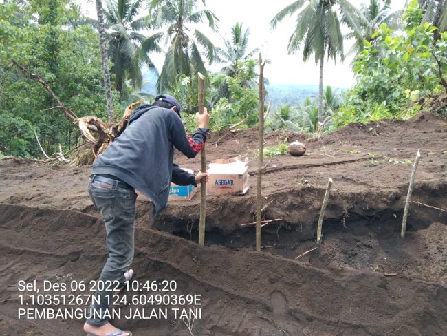 Melalui kegiatan dana desa (DD) tahap 3 tahun 2022, Pemdes Lobu melakukan pembangunan perintisan jalan tani yang berlokasi di perkebunan Salosong Kelesue.
