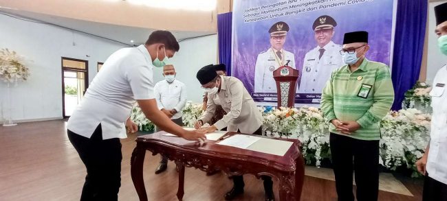 Penghujung acara, Bupati Bupati Boltim menandatangani, kerjasama dengan Pondok Pesantren Miftahul Khoir Tebuireng Vll Buyat.