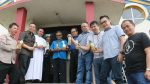 Walikota membagikan hand sanitizer kepada umat paroki Roh Kudus Tomohon melalui Pastor Paroki Roh Kudus Tomohon Pastor Hadi Ignatius Untu Pr, hadir juga Kepala Dinas Perindustrian dan Perdagangan Provinsi Sulawesi Utara Drs Edwin Kindangen yang merupakan Ketua Umum Kaum Bapak Katolik (KBK) Keuskupan Manado, serta jajaran Pemerintah Kota Tomohon. (davyt)