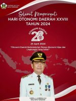 SULUTDAILY|| Tomohon -Walikota Tomohon Caroll Joram Azarias Senduk SH, diwakili Sekretaris Daerah Kota Tomohon Edwin Roring SE ME bertindak Inspektur Upacara Peringatan Hari Otonomi Daerah XXVIII Tahun 2024 di Kota Tomohon, (25/4/2024) di Lapangan Upacara Kantor Walikota Tomohon.