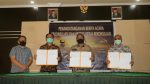 SULUTDAILY|| Tomohon – Walikota Tomohon Jimmy Feidie Eman SE Ak CA diwakili Sekretaris Daerah Kota Tomohon Ir Harold V Lolowang MSc melakukan Penandatanganan Berita Acara Rekonsiliasi dan Kertas Kerja Rekonsiliasi bersama Kepala Kantor Pelayanan Pajak Pratama Manado Devianus Polii, serta Kepala Kantor Perbendaharaan Negara Manado Wayan Juwena, (24/7/2020) di Aula BPKPD Kota Tomohon.