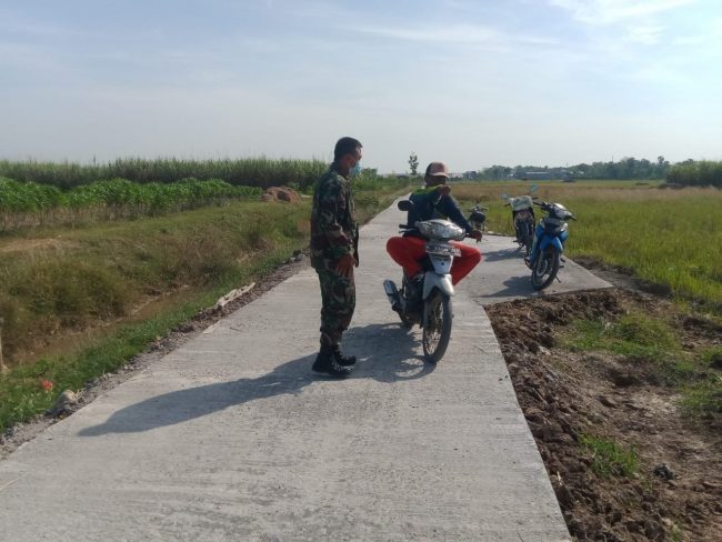 Puluhan warga Desa Tamansari bersama anggota Satgas TMMD Reguler ke 111 Kodim 0718/Pati, melaksakan pengecoran jalan di salah satu sasaran TMMD ke 111.