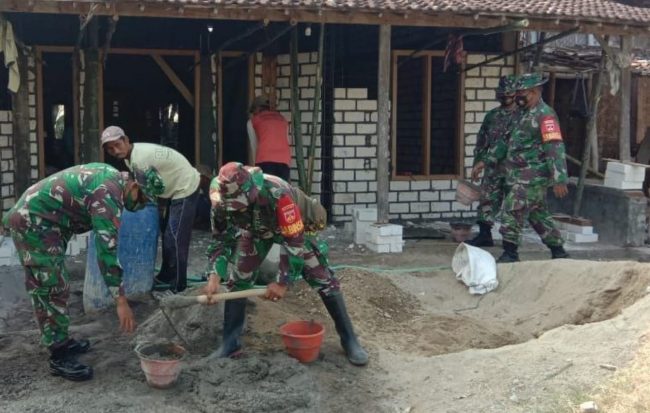 Bahu – membahu anggota Satgas TMMD Reguler ke- 111 bersama masyarakat Desa Tamansari Sari, Kecamatan Jaken, Kabupaten Pati, melaksanakan pengecoran rabat jalan yang sangat panjang ini.