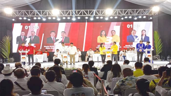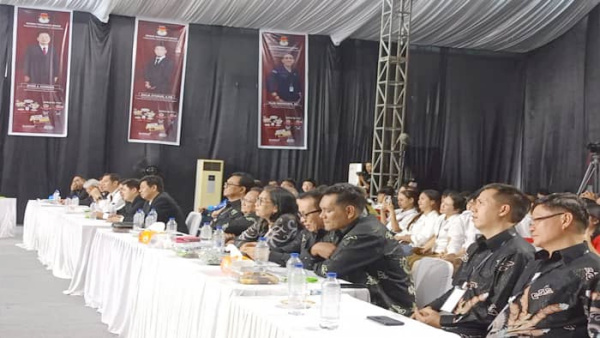 Hadir dalam acara tersebut antara lain Komisioner KPU Ryan Sandag, Lucky Mamahit, Sastro Mokoagow, Aulia Syukur, Pj Bupati Denny Mangala, Kapolres AKBP Eko Sisbiantoro, Ketua Bawaslu Jobie Longkutoy beserta anggota Dolly Van Gobel dan Mario Lontaan, serta berbagai tokoh masyarakat dan pendukung masing-masing calon. (Advertorial)