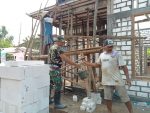 SULUTDAILY//PATI – Satgas TNI Manunggal Membangun Desa (TMMD) Reguler Ke-111 Kodim 0718/Pati bersama warga melaksanakan pengecoran teras depan, pada rangkaian kegiatan rehab Rumah Tidak Layak Huni (RTLH) di Desa Tamansari, Kecamatan Jaken, Kabupaten Pati.