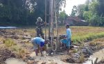 SULUTDAILY//Pati – Anggota Satgas TNI Manunggal Membangun Desa (TMMD) Reguler ke-111 Kodim 0718/Pati, Serda Sukarji membantu Bapak Suwanto (47) warga Dukuh Pandahan, Desa Tamansari, Kecamatan Jaken, Kabupaten Pati yang sedang membuat sumur bor di lahan sawah miliknya, Selasa (13/7/2021).