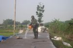“Saya setiap hari bertugas menyirami beton menggunakan air yang saya ambil dari saluran irigasi yang ada disebelah jalan,”ujar Koptu Denny poppa anggota satgas TMMD.
