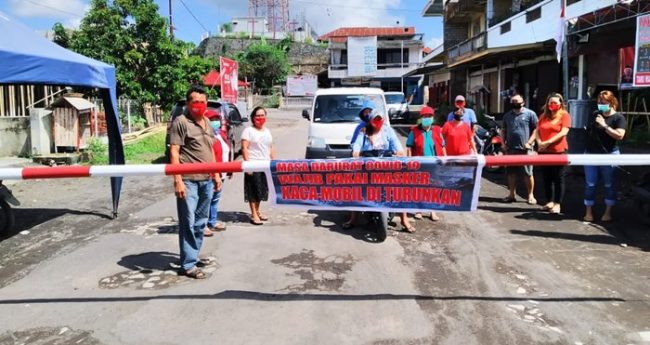 Dari lima titik akses jalan desa yang ditutup, khusus untuk jalan utama masuk dan keluar warga dijaga ketat ptugas piket di pos penjagaan.