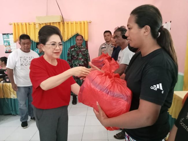 Pj Bupati dr Rinny Tamuntuan Berikan Bantuan ke 141 KK Korban Banjir