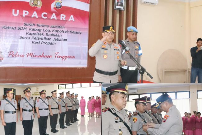 SULUTDAILY|| Ratahan – Kepolisian Resor (Polres) Minahasa Tenggara (Mitra) menggelar upacara serah terima jabatan (sertijab) bagi sejumlah pejabat utama dan Kapolsek, pada Selasa (27/5/2025) di Aula Polres Mitra.