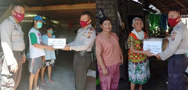 SULUTDAILY|| Ratahan – Peduli warga terdampak pendemic covid19, Kepolisian Sektor (Polsek) Touluaan, Minahasa Tenggara, dibawah nahkoda Kapolsek Iptu Imanuel Lutam, berbagi kasih dengan warga masyarakat di Kecamatan Touluaan dan Silian Raya.