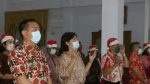 SULUTDAILY|| Tomohon – Walikota Tomohon Caroll JA Senduk SH didampingi Pembina Ikatan Alumni Haggai Indonesia Tomohon drg Jeand’arc Senduk-Karundeng menghadiri dan mengikuti Ibadah Menyambut Natal Ikatan Alumni Haggai Indonesia Tomohon, (16/12/2021) di Aula Rumah Dinas Walikota Tomohon.