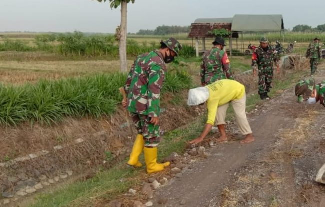 SULUTDAILY//PATI – Pelaksanaan kegiatan fisik TNI Manunggal Membangun Desa (TMMD) Reguler ke 111 Tahun 2021 di Desa Tamansari, Kecamatan Jaken, terus dikebut. Personil Kodim 0718/Pati, bersama warga setempat terus menyelesaikan sasaran kegiatan fisik, baik pembangunan jalan, maupun rehabilitasi Rumah Tidak Layak Huni (RTLH).