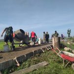 Dengan menggunakan kendaraan bermotor baik dinas dan milik sendiri, mereka datang kelokasi areal jalan pembangunan.