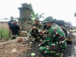 Sambil jangkok menikmati makanan jajanan minum teh, yang di sediakan warga masyarakat rilex bercerita kegiatan pembuatan tugu identitas, merupakan salah satu saksi sejarah bahwa kegiatan TMMD pembangunan jalan betonisasi bersama warga masyarakat setempat,”ungkap kopda Nur Khin,